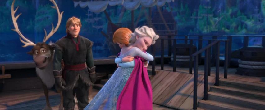 Anna pula para o resgate e coloca-se na frente de Elsa e Hans, congelando ela segundos antes da morte. Hans é nocauteado por Elsa. Ela chora imediatamente pela irmã, Kristoff, Sven e Olaf chegamem breve como ela começa a chorar. No entanto, o sacrifício de Anna foi um ato de amor verdadeiro, e ela logo é revivida a partir de sua morte, para grande alegria completa de todos. E junto com o renascimento de Anna vem o descongelamento de todo o reino. Mais uma vez, Arendelle é restaurada para a paz, e Elsa é mais uma vez aceita, como todas as pessoas finalmente entendem que ela não é um monstro, mas uma criadora de uma bela magia. Anna e Kristoff proclamam seu amor, e Elsa evoca uma nuvem de neve para Olaf para sobreviver durante todo o ano, inclusive no verão. Com a paz restaurada e o relacionamento entre as irmãs sendo pacífico, mais uma vez , Anna e Elsa se alegram no pátio do palácio com todo o reino se juntando nas festividades.