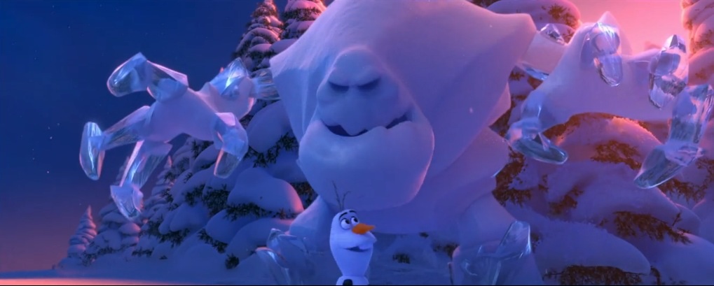 Depois de uma curta viagem, Olaf e os outros acham o castelo de gelo de Elsa, mas a rainha da neve não é muito entusiasmada com a idéia de voltar para Arendelle, dizendo a Anna para sair e desfrutar de sua vida onde ela pertence. Só então, Olaf chega, muito feliz em ver Elsa novamente. Sua presença prova que há amor e beleza em seus poderes, bem como lembrá-la dos momentos alegres que passou com Anna. No entanto, as suas memórias de infância também lembram de Elsa na noite assombrada aonde ela quase matou a irmã dela, levando-a a sair de cena, pedindo a Anna para sair mais uma vez. Anna se recusa a sair sem a sua irmã , mas a teimosia só faz Elsa desconfortável, fazendo-a perder o controle sobre seus pólos mais uma vez e, acidentalmente, congelar o coração de Anna. Ela, então, pede -lhes para sair mais uma vez, e mais uma vez, Anna se recusa. A fim de mantê-los longe, Elsa cria um guarda-costas pessoal chamado Marshmallow, um boneco de neve gigante. Olaf é excitado para ver um outro boneco encantado, mas é imediatamente expulso junto com Anna e Kristoff. Depois de Anna testar sua paciência, Marshmallow persegue o grupo. Olaf tenta impedi-lo, mas é facilmente páreo para a besta e é jogado sobre um penhasco, que Anna e Kristoff caem, apesar de todos eles sobreviverem. Uma vez que recupera sua energia , Kristoff percebe que o cabelo de Anna esta ficando brancos, em vez da forma avermelhada. Para ajudar, ele leva o grupo a um vale repleto de trolls místicos. O rei dos trolls, Pabbie, informa a Anna que, se ela não executar um ato de amor verdadeiro, ela vai congelar até a morte. Os amigos imediatamente correm de volta para Arendelle, acreditando que um beijo de Hans, um príncipe noivo de Anna, vai quebrar a maldição.