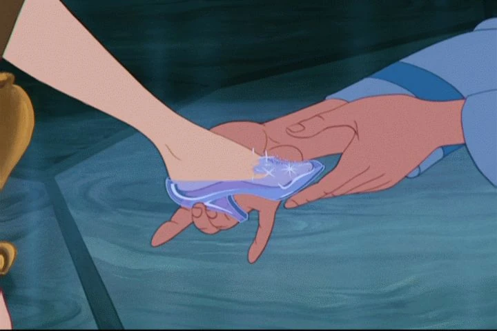 Os sapatinhos de cristal são o calçado delicados conjurados para Cinderela por sua fada madrinha (acessório adicional para seu vestido de baile bem adequado) para que ela possa ir ao baile no castelo do rei. Como Cinderela foge do castelo, quando o relógio bate meia-noite, ela perde um dos sapatos nos degraus enquanto ela sai. O Grão-Duque pega e procura através do reino para encontrar a jovem donzela cujo pé pode caber no calçado. Depois de pesquisar todo o reino, o Grão-Duque vem à casa de Cinderela. Anastasia e Drizella tentam colocar seus pés para o pequeno sapato, mas não conseguem. Cinderela desce do quarto dela e pergunta se pode experimentá-lo. Quando Herald entrega o sapatinho de Cinderela, Lady Tremaine usa sua bengala para derrubá-lo, causando o sapato para voar e quebrar em pedaços após bater no chão. Cinderela surpreende a todos ao revelar que ela tem outro sapato. Quando ele se encaixa o pé, ela é levada para o castelo para se casar com o príncipe.